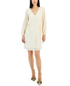 INC Women's Textured Chiffon Long-Sleeve Bow-Back Dress Ivory Size XL MSRP $79