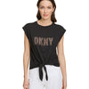 DKNY Womens Tie Front Embellished T-Shirt, Black, Size M MSRP $59