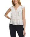 Tommy Hilfiger Womens Ruffled Ladder-Trim Blouse Natural Size L White MSRP $59