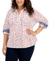 Tommy Hilfiger Confetti-Heart Roll-Tab-Sleeve Cotton Top White Plus Size 2X $80