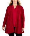 Anne Klein Plus Size 1X Monterey Open-Front Cardigan Dark Red MSRP $109