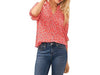CeCe Women's 3/4-Sleeve Tie Neck Floral Print Blouse Pink Coral Size S MSRP $79