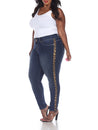 White Mark Women's Plus Size 20 Blue Super Stretch Denim with Cheetah Pannel