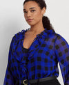 Lauren Ralph Lauren Plus Size 3X Ruffled Buffalo Check Blouse Blue MSRP $145