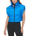 Calvin Klein Women's Cropped Mock-Neck Zip-up Vest Neon Blue Size M MSRP $80