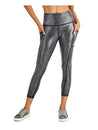 Ideology Women's Active Shine 7/8-Length Leggings Spiral Black Silver Size XL