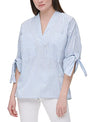 Calvin Klein V-Neck Pullover Blouse Cashmere White Blue Size S (US 4-6)