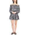 MICHAEL KORS Printed Crinkle Off-The-Shoulder Mini Dress Black Size XL MSRP $140