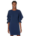 LAUREN Ralph Lauren Ruffle-Sleeve Ponte Dress Navy Blue Size 12 MSRP $165