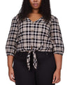 Michael Kors Women's Flannel Tie Front Top Black Plus Size 2X MSRP $98