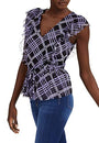 INC Womens Blouse Purple Large Ruffle Plaid-Mesh V-Neck Black L