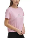 Dkny Sport Women's Cotton Embellished Logo T-Shirt Pink Size S MSRP $45
