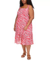 Michael Kors Soft Zebra Midi Dress viscose Red Plus Size 0X MSRP $185