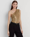 LAUREN RALPH LAUREN Women Foil-Print Jersey One-Shoulder Top Brown Size XL $90