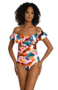 La Blanca Womens Off Shoulder Ruffle One Piece Swimsuit Multi Size 20 Plus