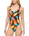 Calvin Klein BLACK MULTI Printed Low-Back One-Piece Logo Swimsuit, US Size S