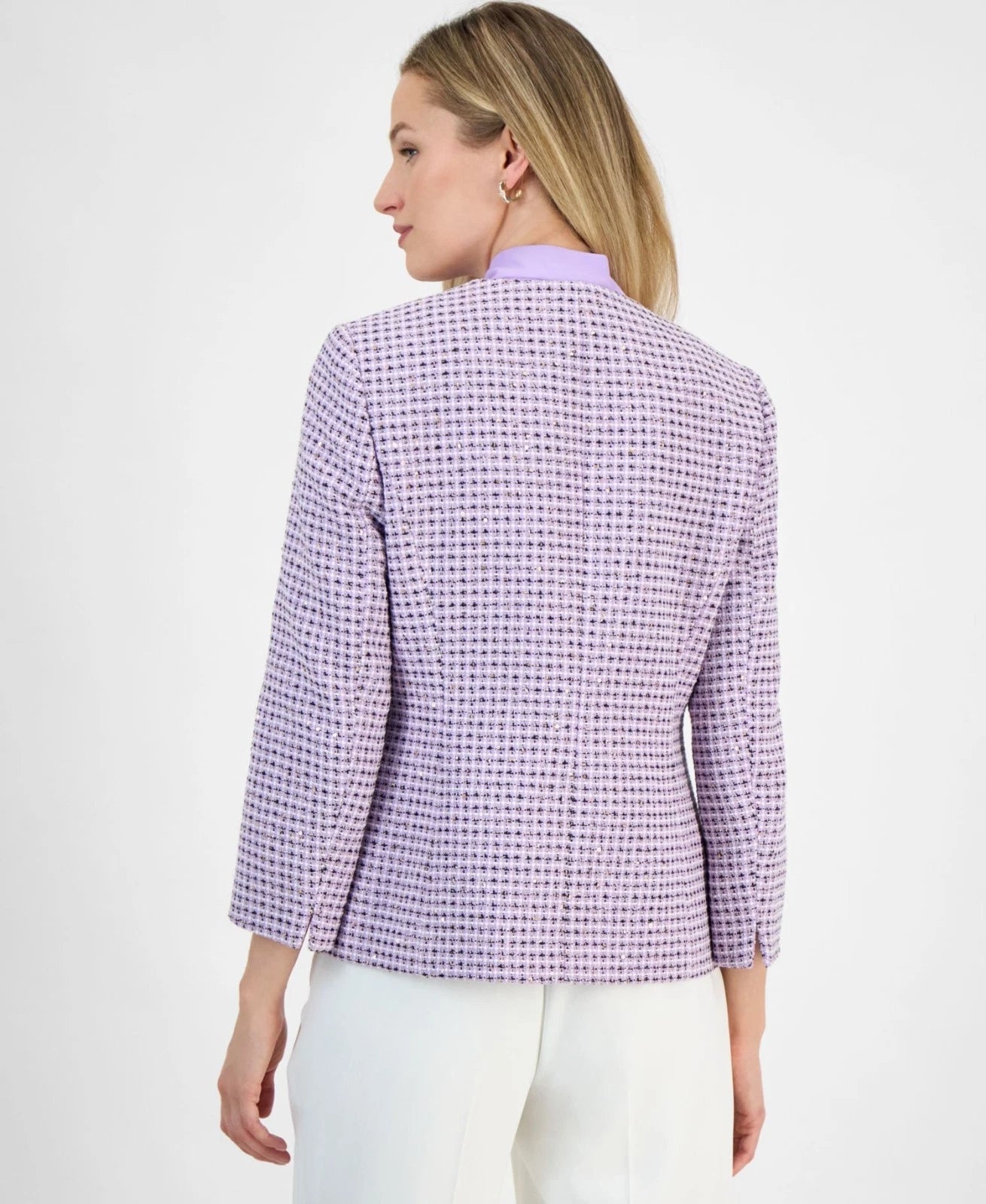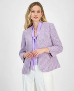 Kasper Women's Tweed Open-Front 3/4-Sleeve Jacket Purple Size 12P MSRP $149