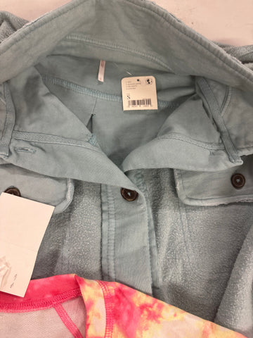 Michael Kors Foil-Print Smocked Peasant Dress Turquoise Blue Size S MSRP $125