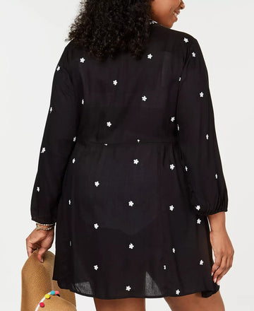 Michael Kors Foil-Print Smocked Peasant Dress Turquoise Blue Size S MSRP $125