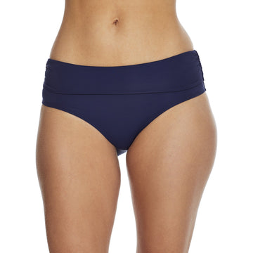Anne Cole - Convertible High Waist Shirred Swim Bottom Blue Navy Size XS