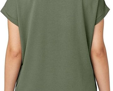 This women top comes with curved hem, made of Soft french terry fabric (95% Viscose ' 5% Elastane, midweight, GSM 190) in relaxed fit with crewneck top and short sleeve...