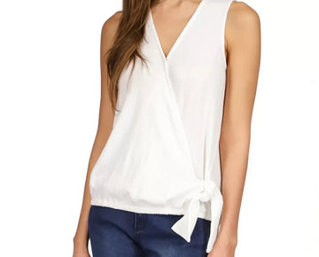Tie up a chic look with MICHAEL Michael Kors' wrap top.* Approx. 24" long* Petite designed to fit and flatter 5'4" and under frame* Surplice neckline* Wrap silhouette with tie...