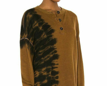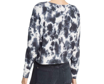 Splendid Womens Tie-Dye Waffle Knit Pullover Crop Top Shirt Black Size XL $88