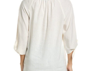 Jones New York womens Elbow Sleeve Linen-Blend Blouse, Size XS, White