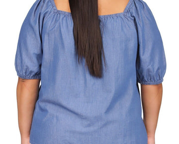 Michael Kors Square-Neck Puff-Sleeve Top Blue Plus Size 3X MSRP $98