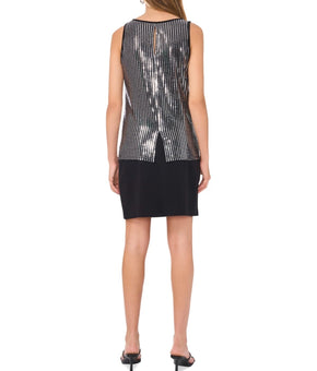Vince Camuto Women's Scoop-Neck Shimmer Sleeveless Tank Top Black Silver Size M