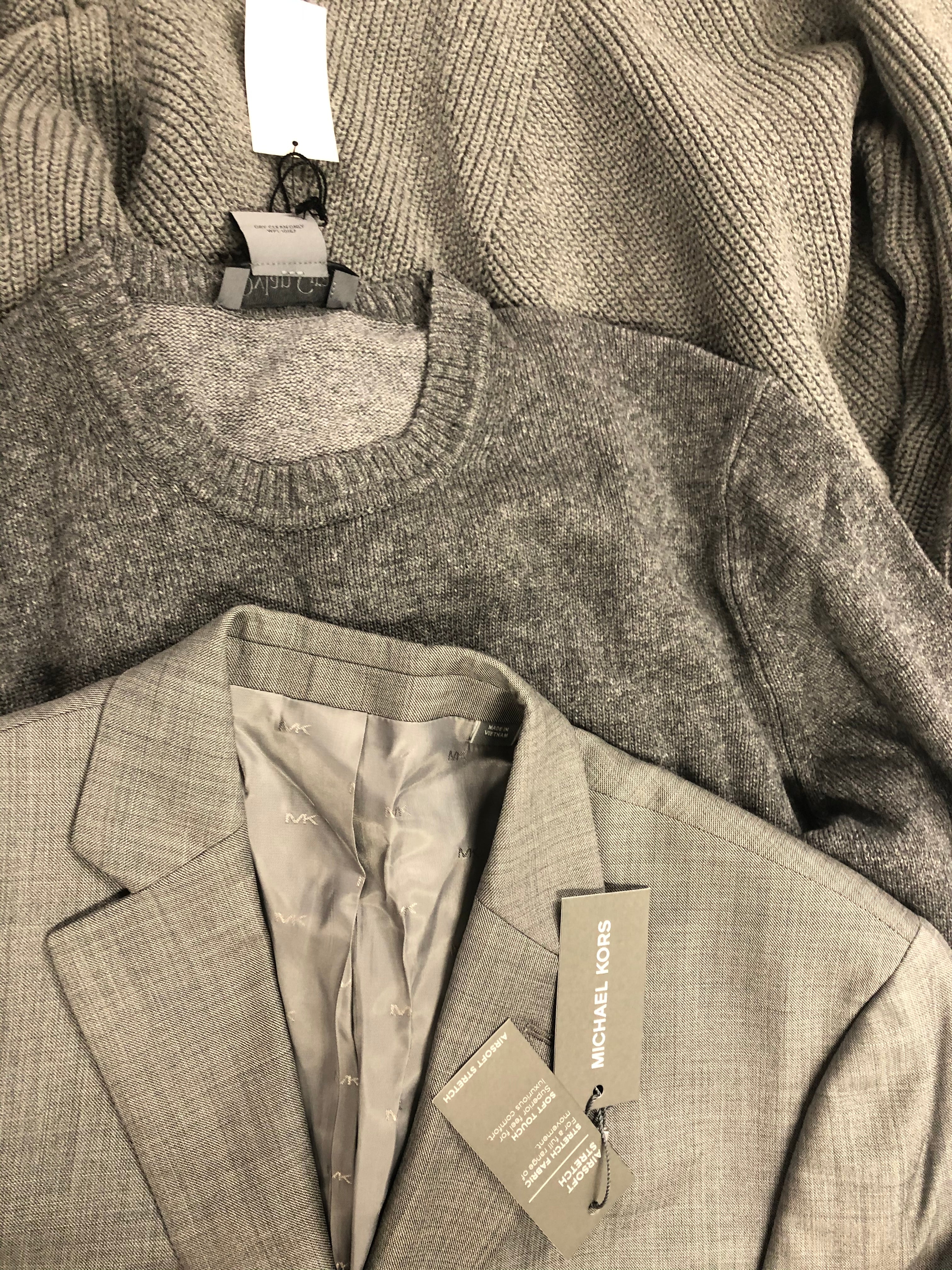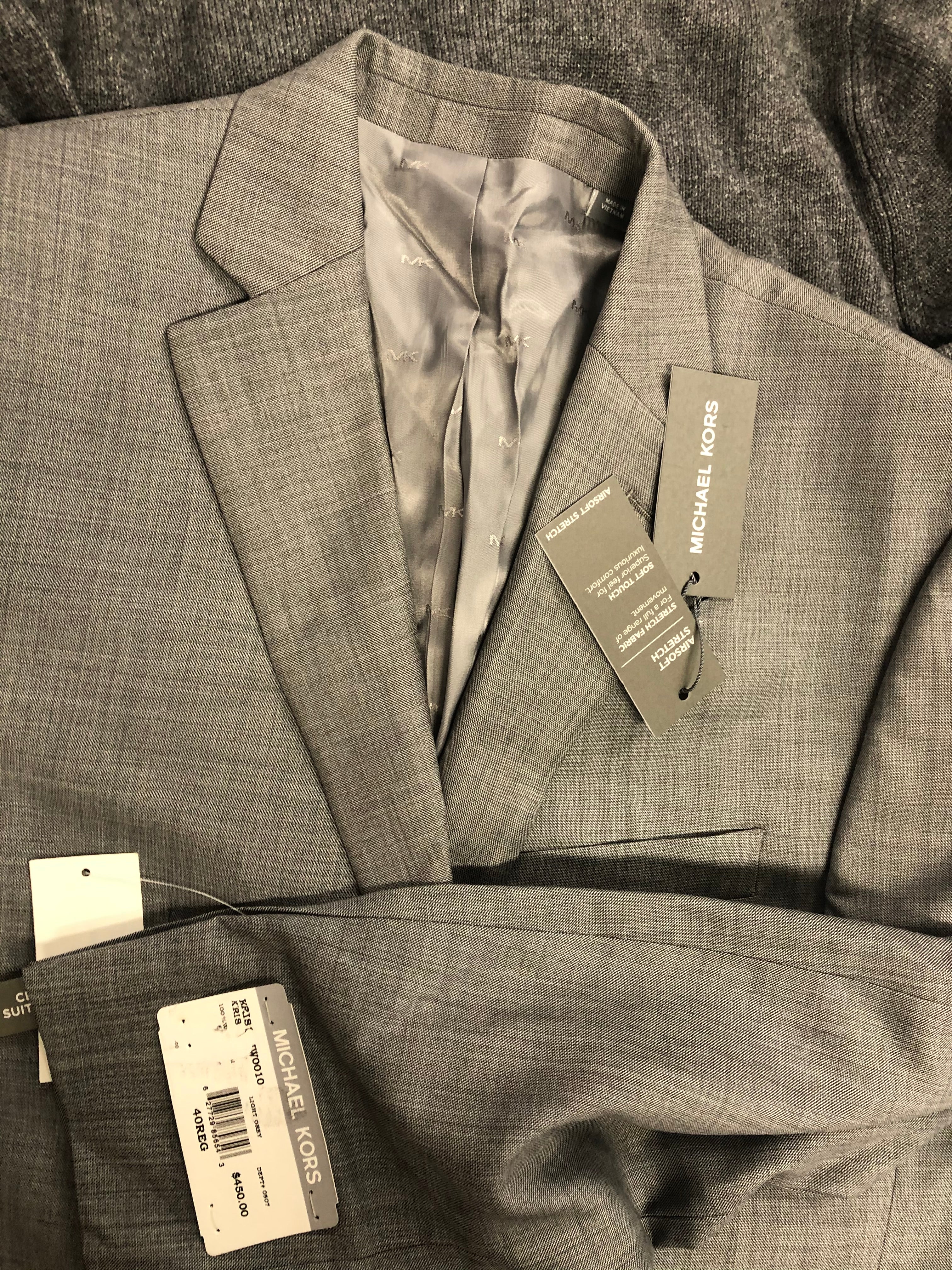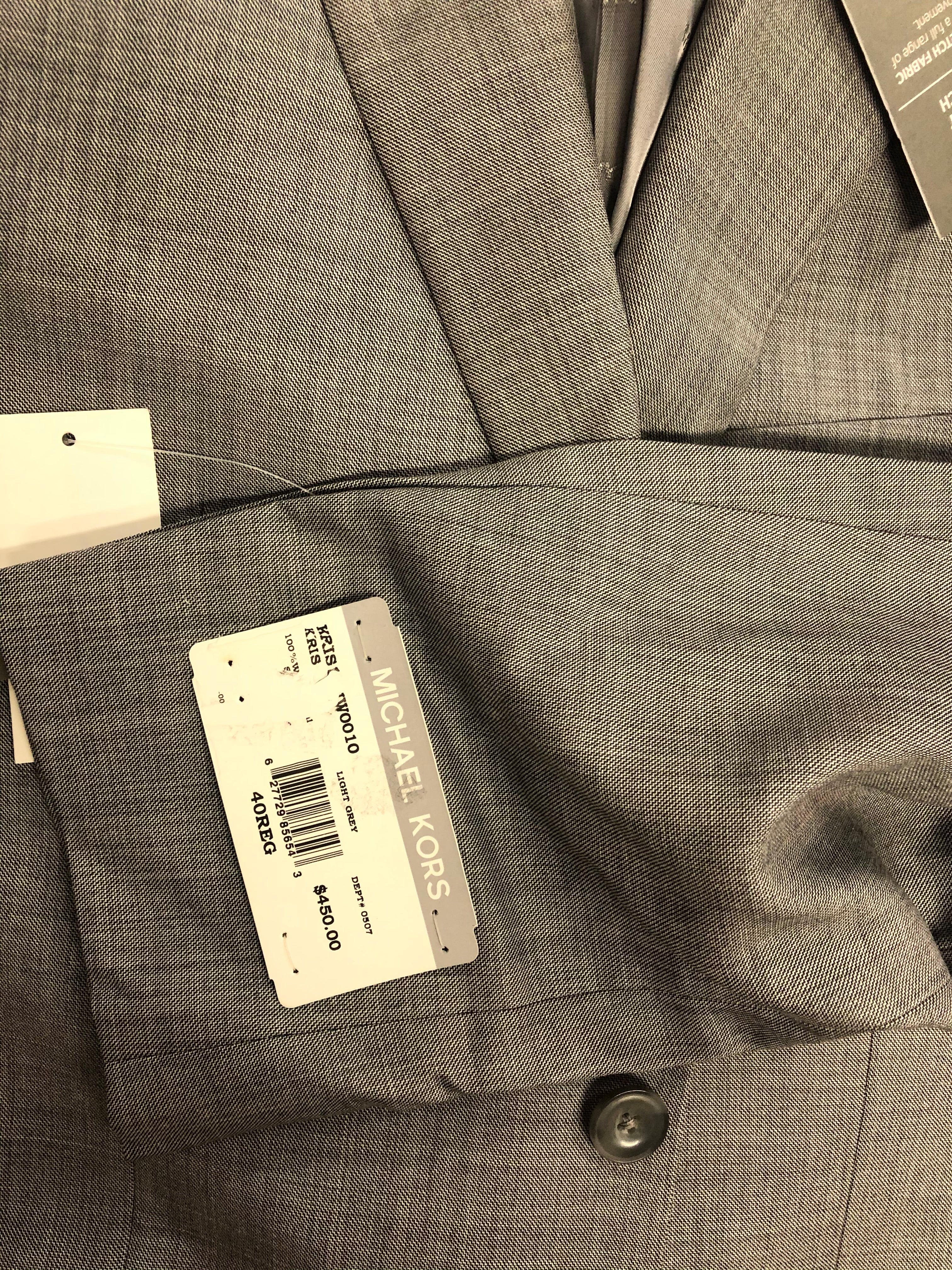 | Yes | 627729856543 | MICHAEL MICHAEL KORS/PEERLESS CLOTH | Michael Kors Mens Classic-Fit Airsoft Stre Grey 40R | $ 450.00 | 40 R/M37.5 | 1 | $450.00 | |