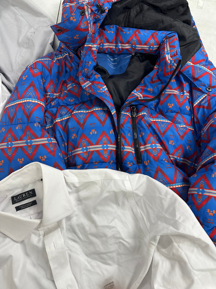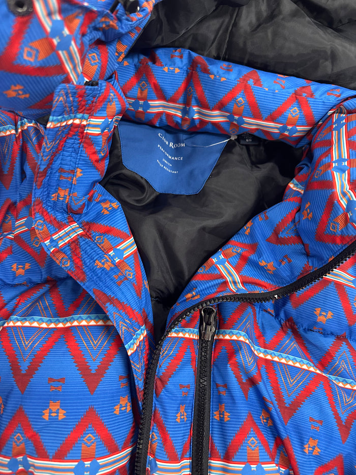 No | CLUB ROOM | Club Room Men S Stretch Hooded Puffer Jacket Kings Patch Work Blue |