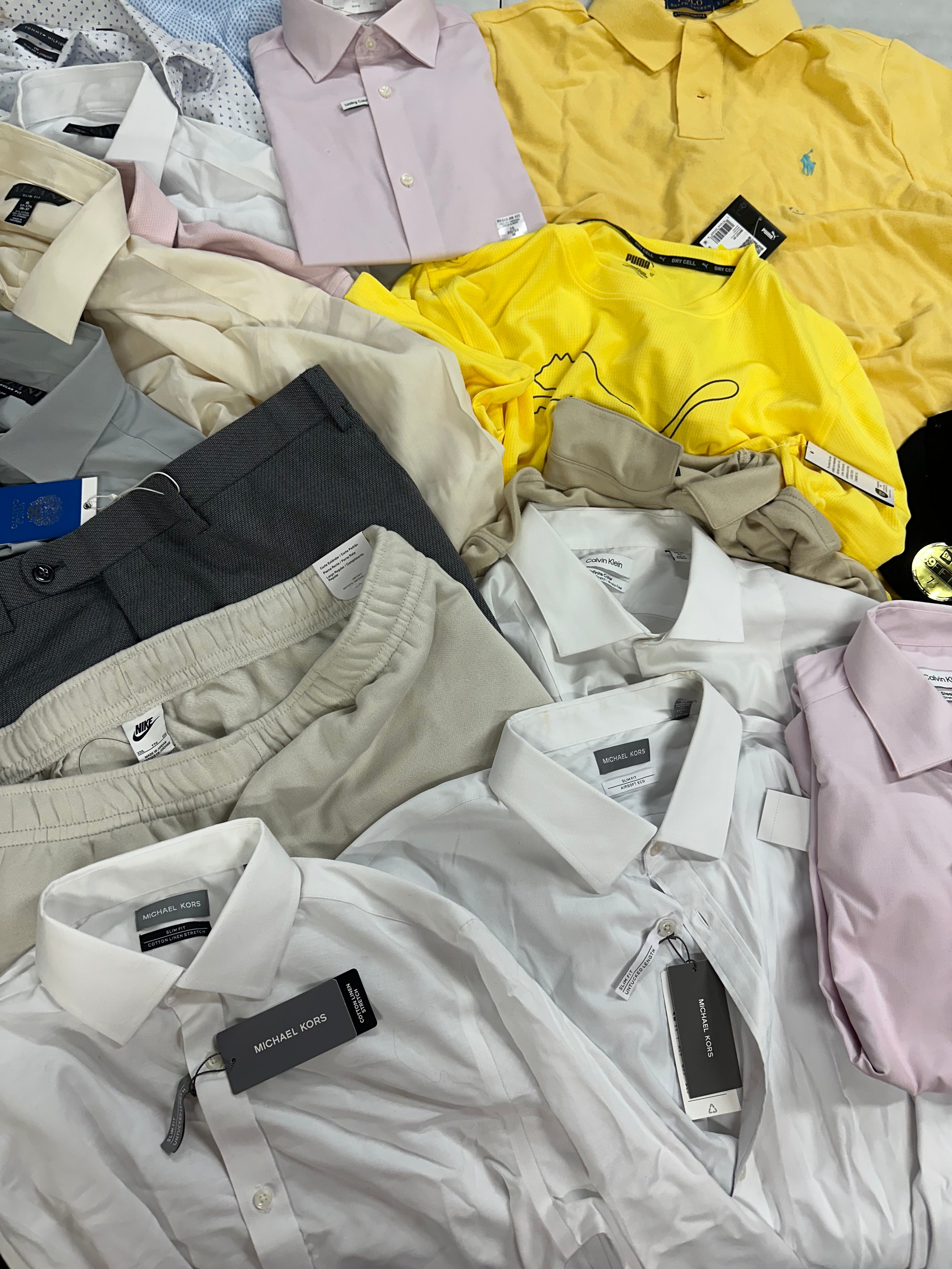 Men's Clothings Dress Shirt and Other Wholesale Lot, MICHAEL KORS, POLO RALPH LAUREN, NIKE, CALVIN KLEIN, TOMMY HILFIGER, NEW ERA and more, 17 items, CUSTOMER RETURNS