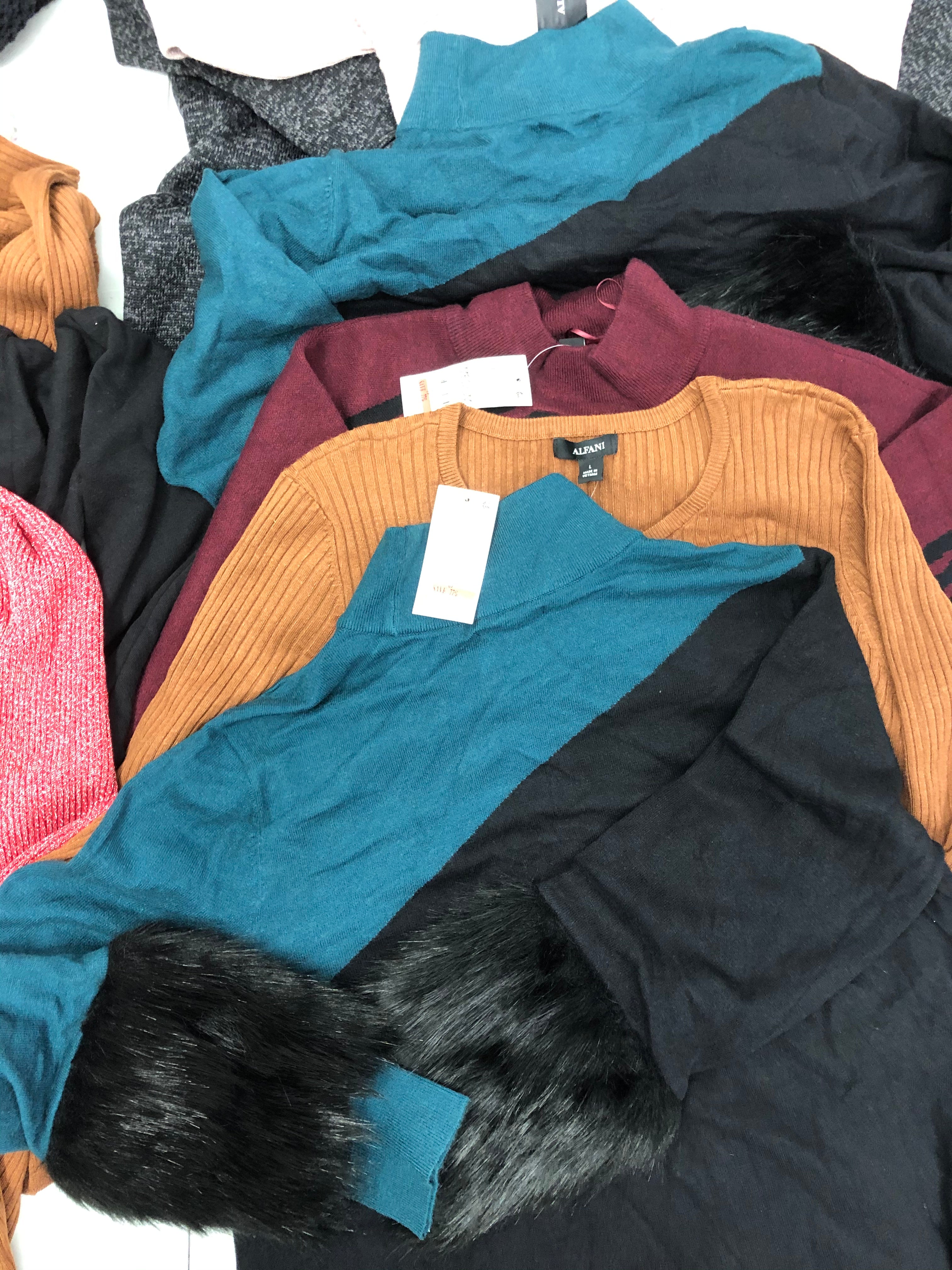 | Fashion | Shelf Pulls | 732999850891 | ALFANI | Alfani Colorblocked Sweater With Faux Teal Black M | $69.50 | 1 | $69.50 | LARGE | Yes | Womens | See Image(s) |