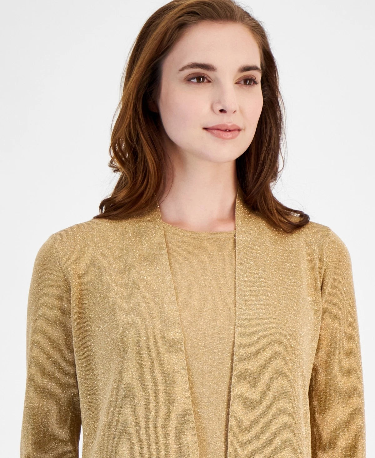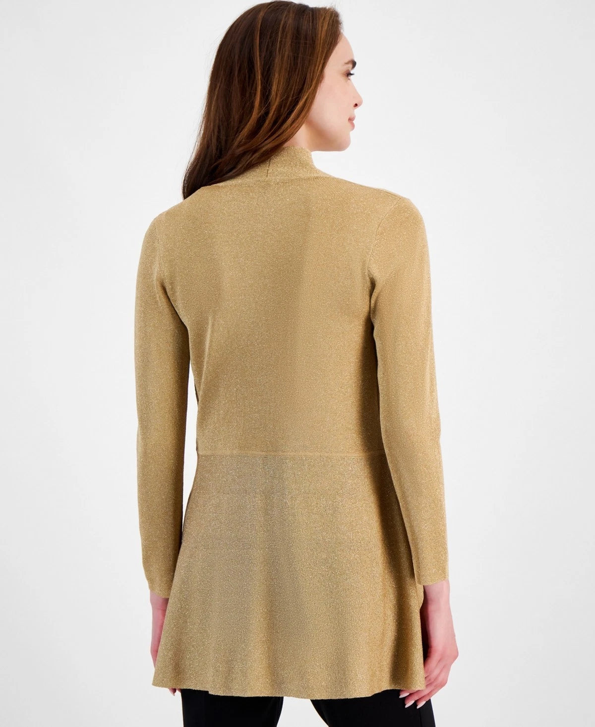 Anne Klein Monterey Open-Front Long-Sleeve Shimmer Cardigan Gold Size XS $109