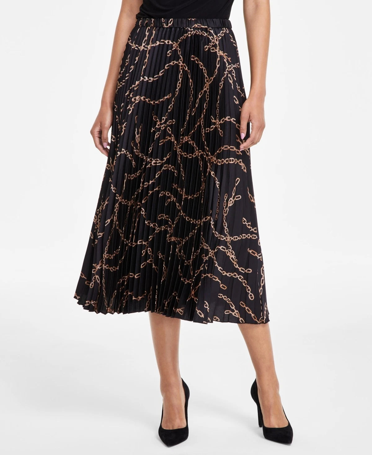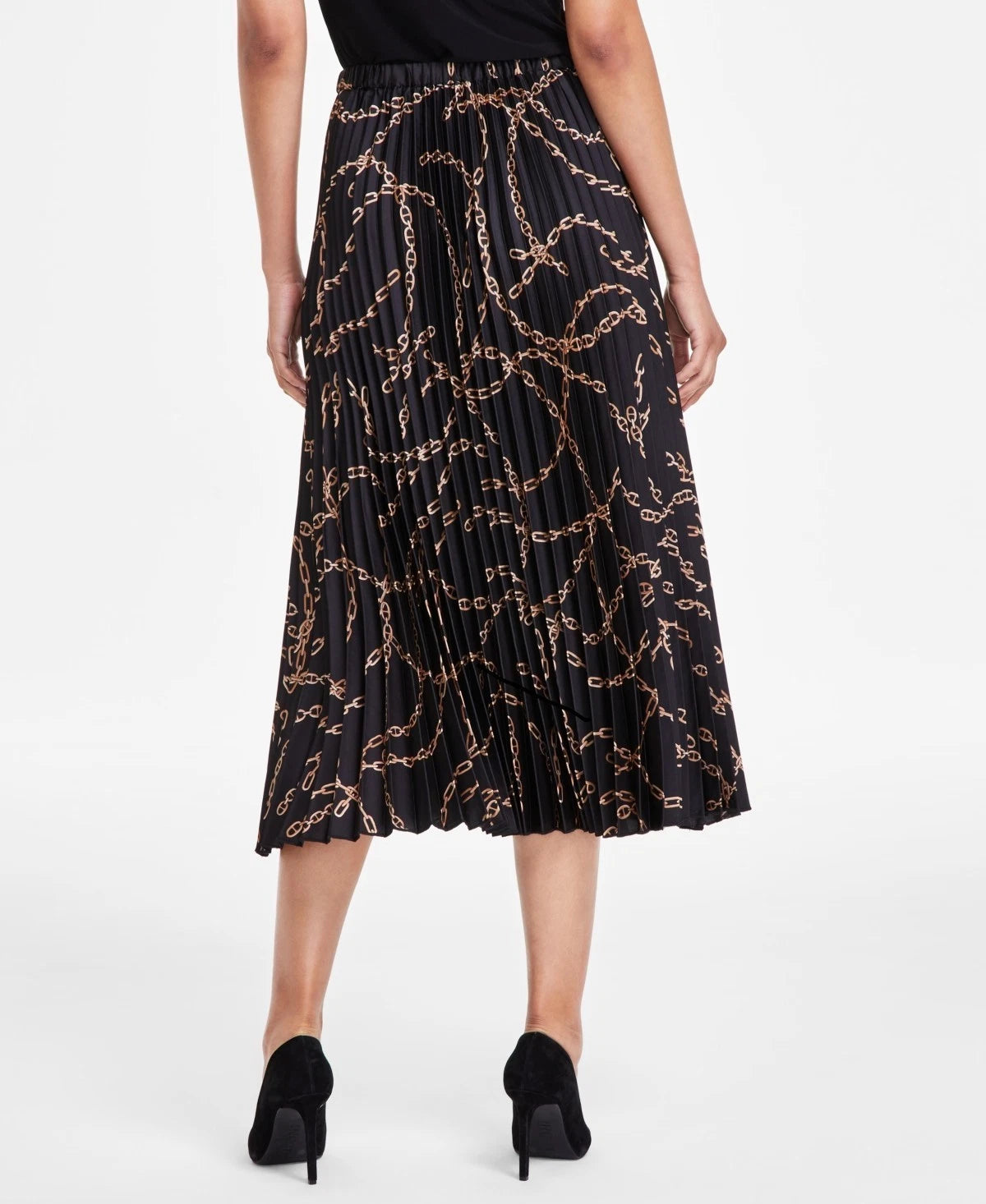 Anne Klein Women Chain-Print Pull-On Pleated Midi Skirt Black Size XXL MSRP $119