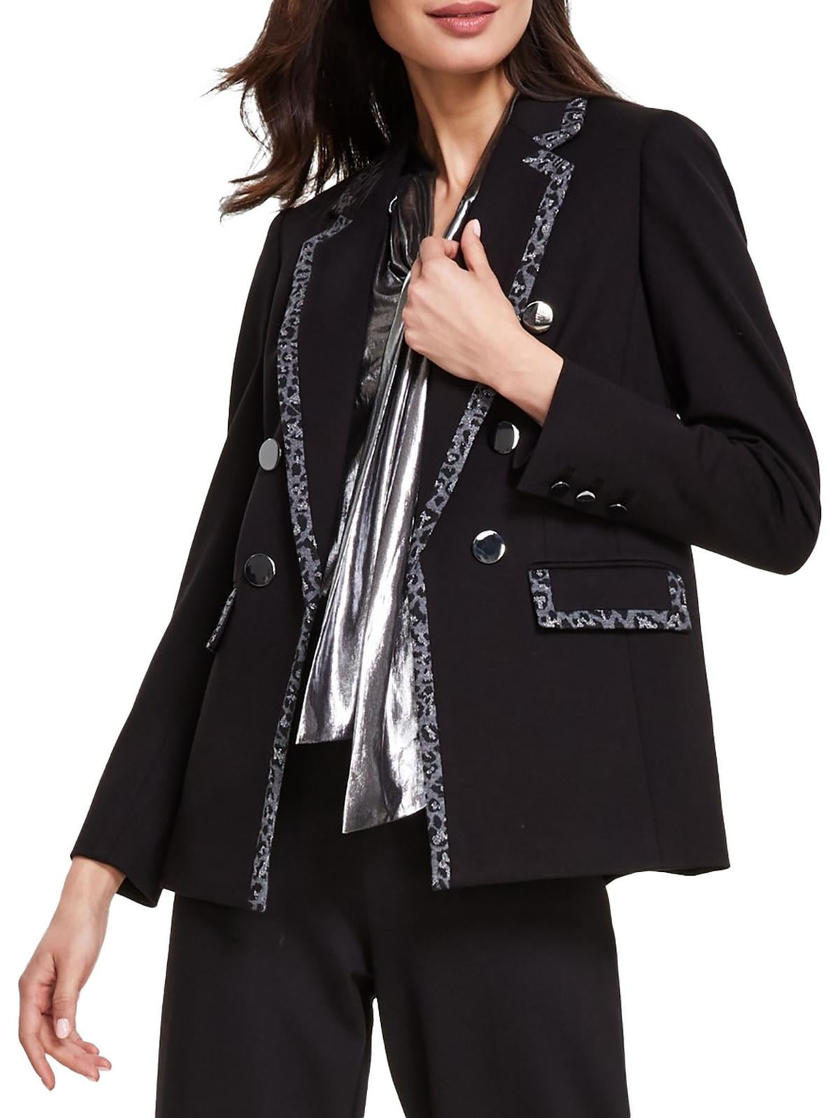 Anne Klein Womens Animal Print Double-Breasted Blazer Black Size L MSRP $149