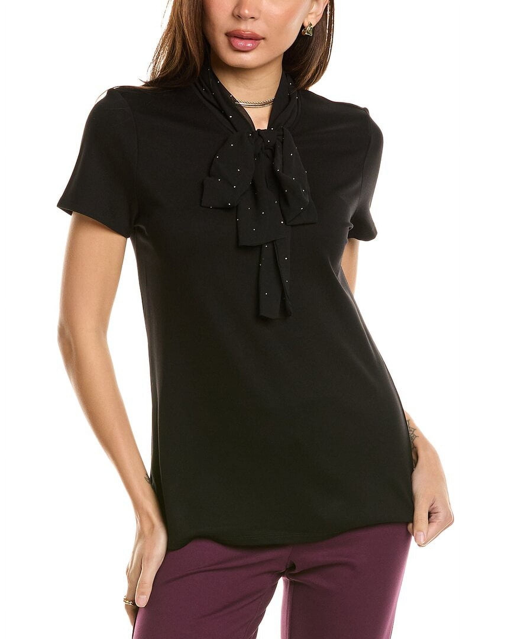 Anne Klein womens Bow Top, Black Short Sleeves Size S MSRP $79