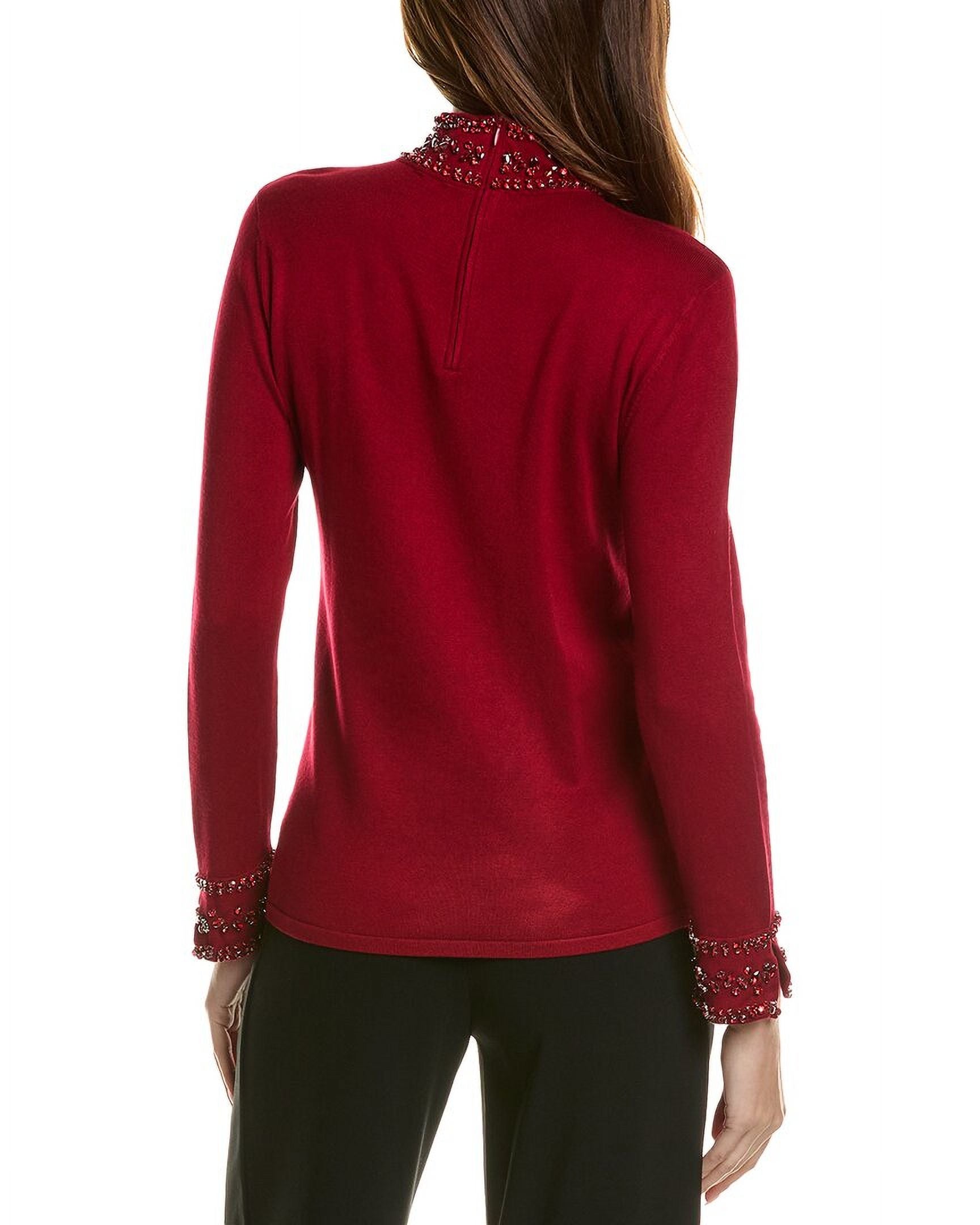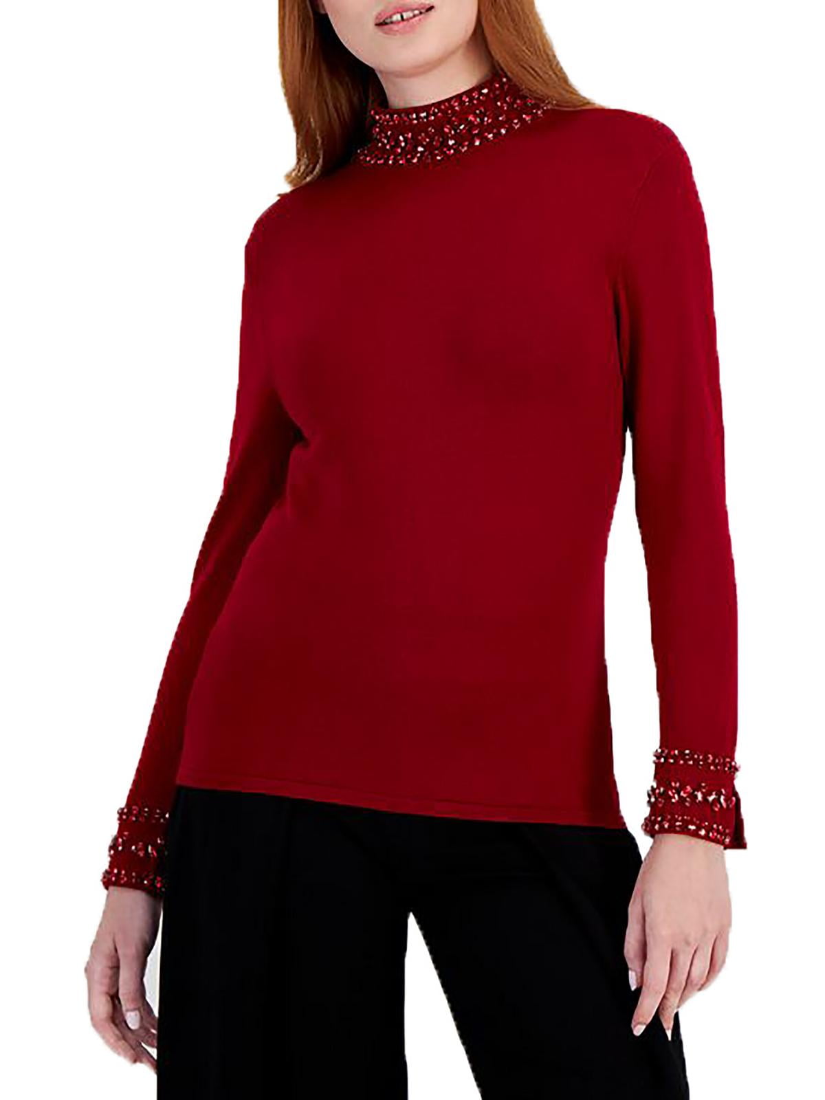 Anne Klein Womens Embellished Pullover Top Size M Red MSRP $129