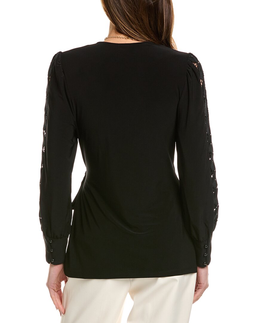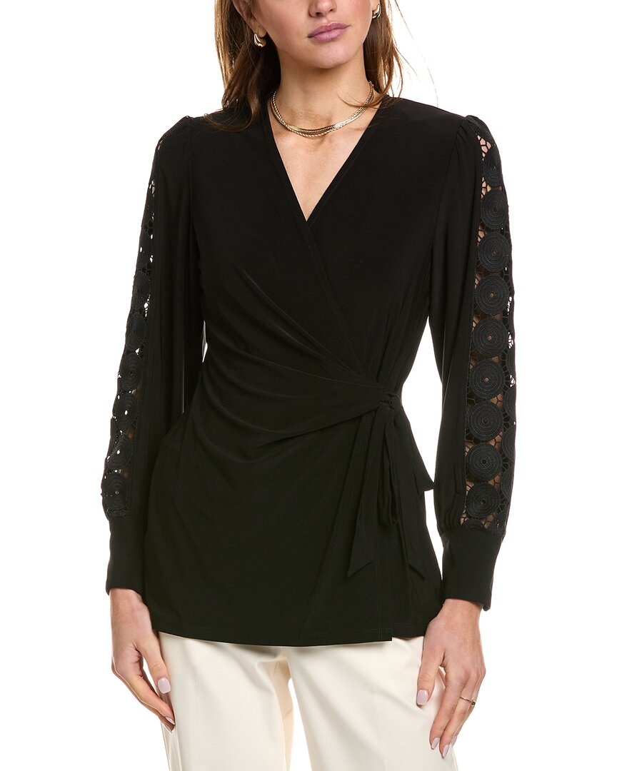 Anne Klein womens Lace Sleeve Wrap Top, Size S, Black MSRP $79