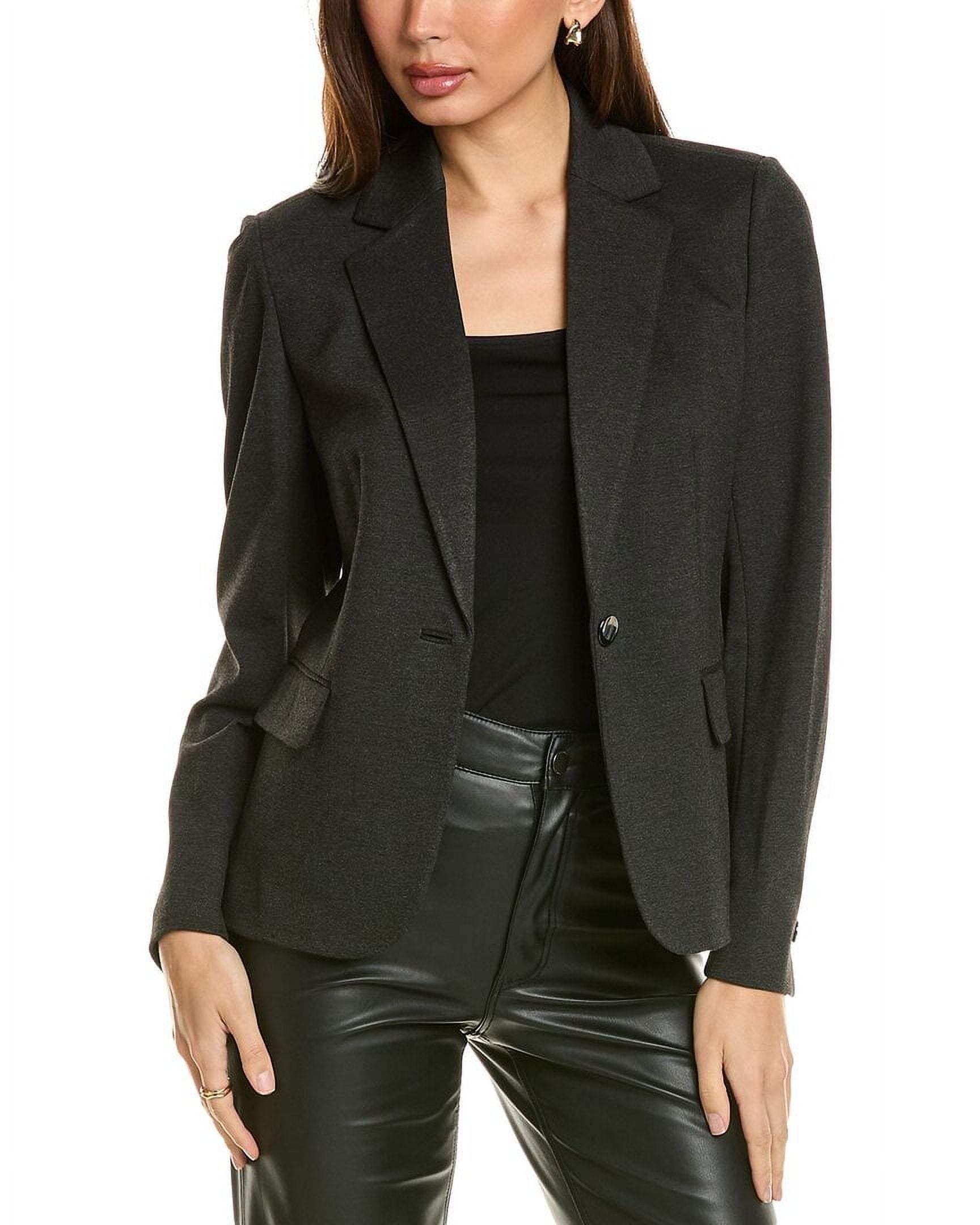 About the brand: Feminine designs for the global woman. Jacket in mid heather grey with dual front pockets and button cuffs Single-button front 68% viscose, 28% nylon, 4% elastane Dry clean only Imported
