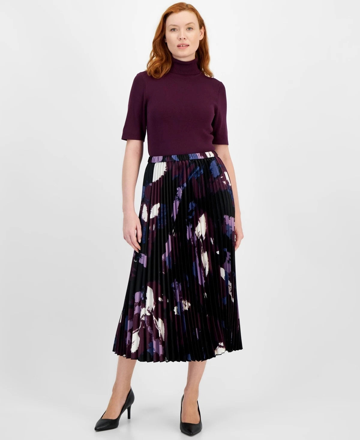 Timeless elegance is yours in this pleated pull-on midi skirt from Anne Klein.
