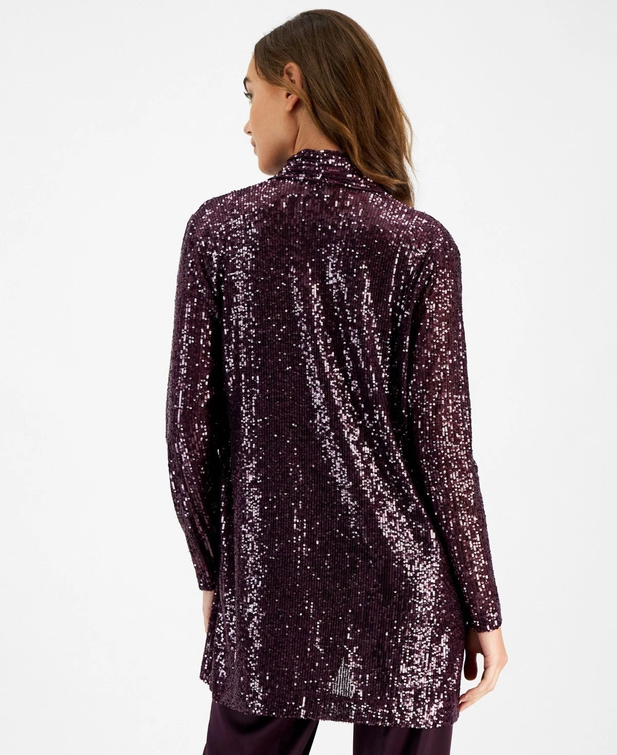 Add the perfect finishing touch to your look with this sparkling sequin jacket from Anne Klein, a versatile open-front design that instantly makes any outfit fancier.