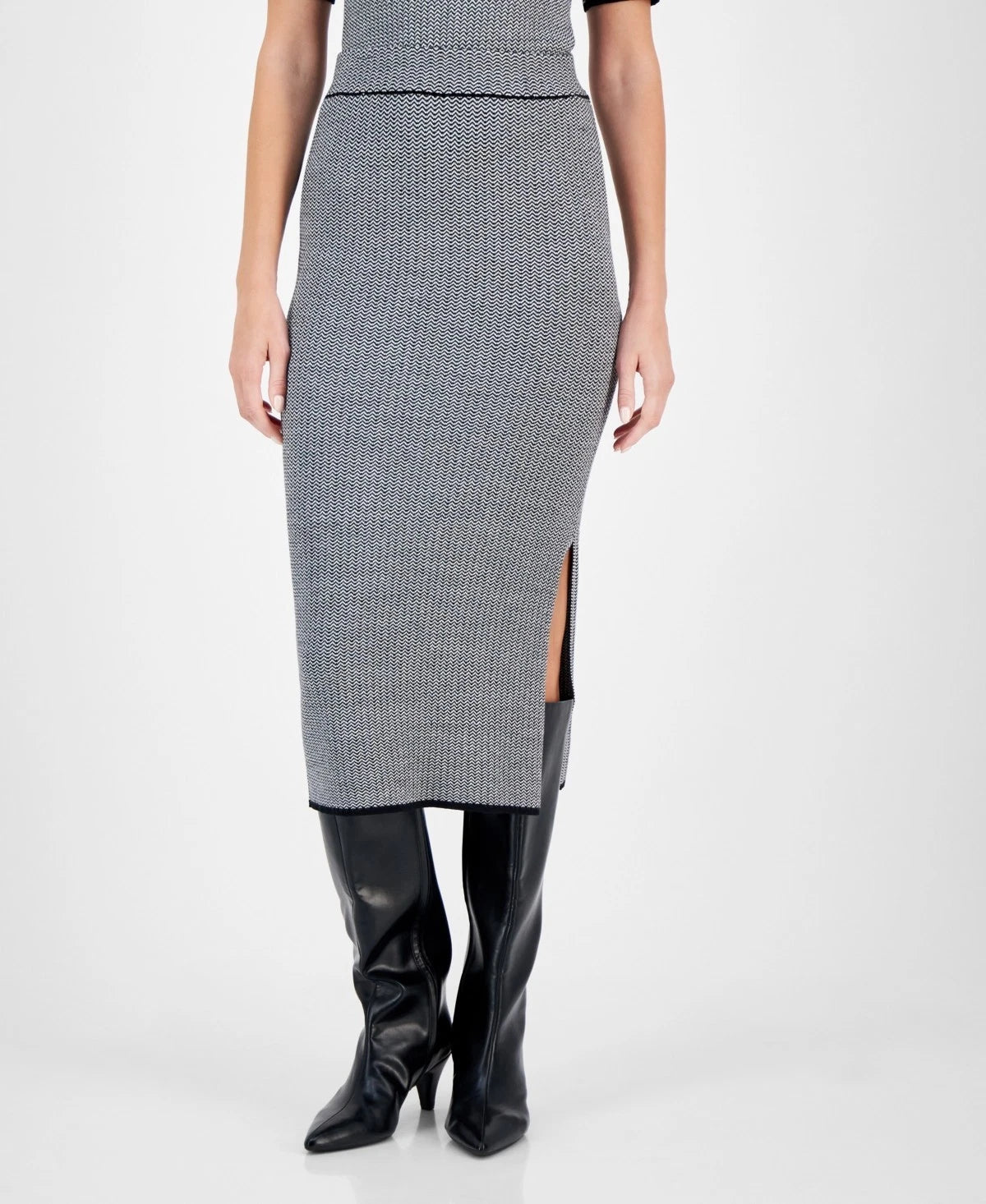 Step into effortless elegance at the office with this women's side slit midi sweater knit skirt from Anne Klein, offering a chic and comfortable style that's perfect for a polished look.
