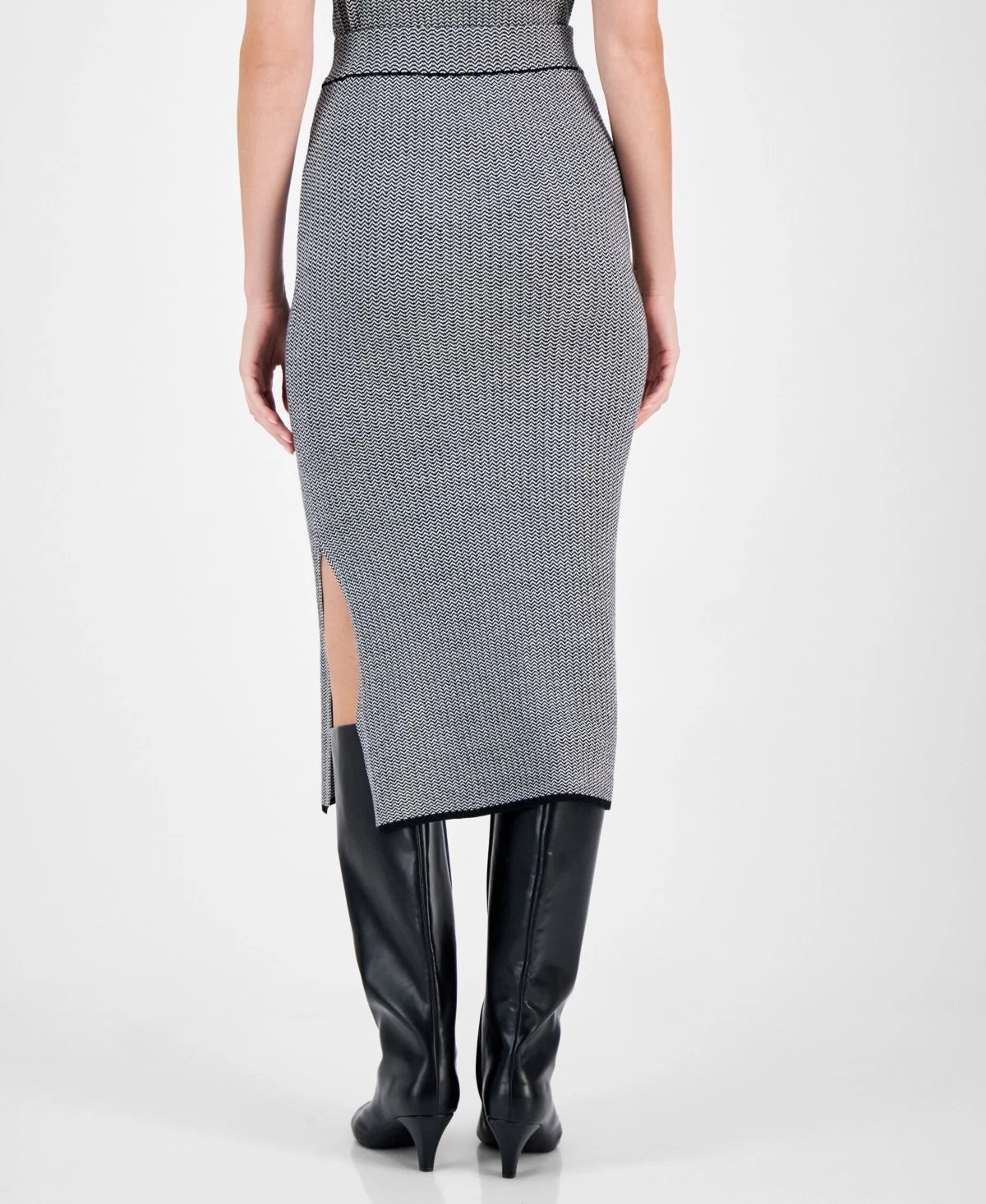 Anne Klein Women's Sweater-Knit Skirt Side-Slit Midi Skirt Gray Size S MSRP $99