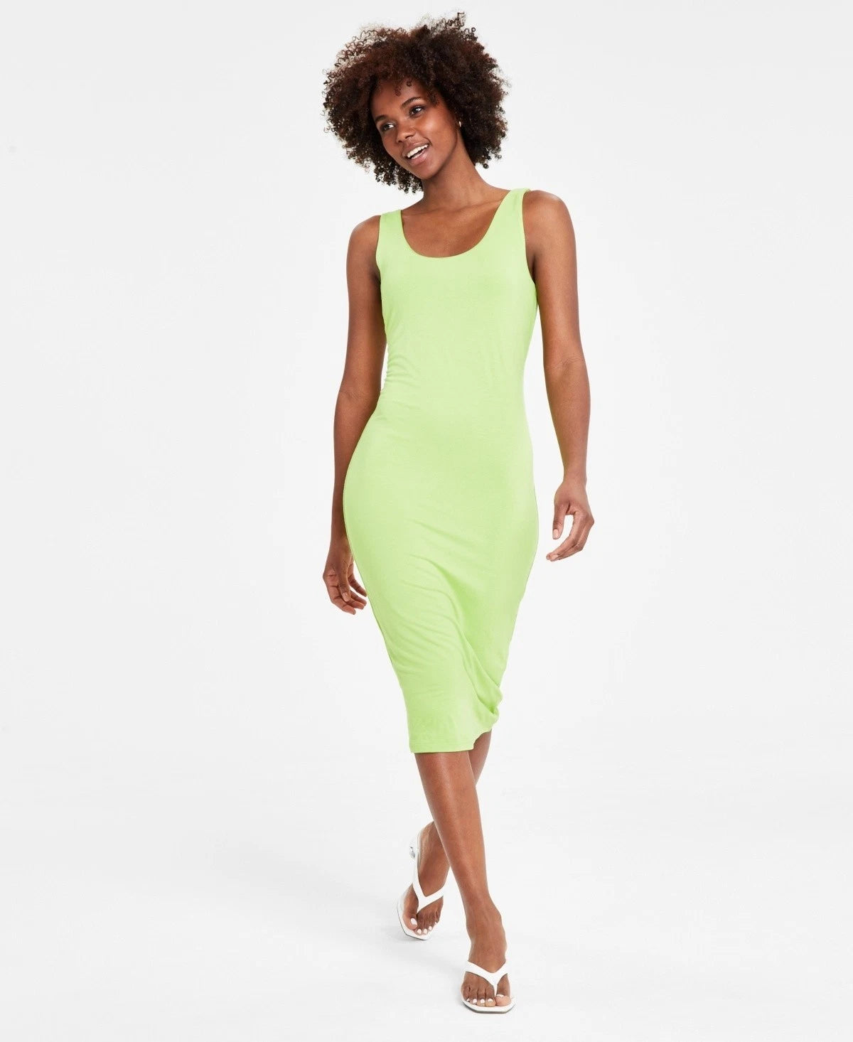 Bar III Petite Scoop-Neck Sleeveless Jersey Midi Dress Light Green Size PM