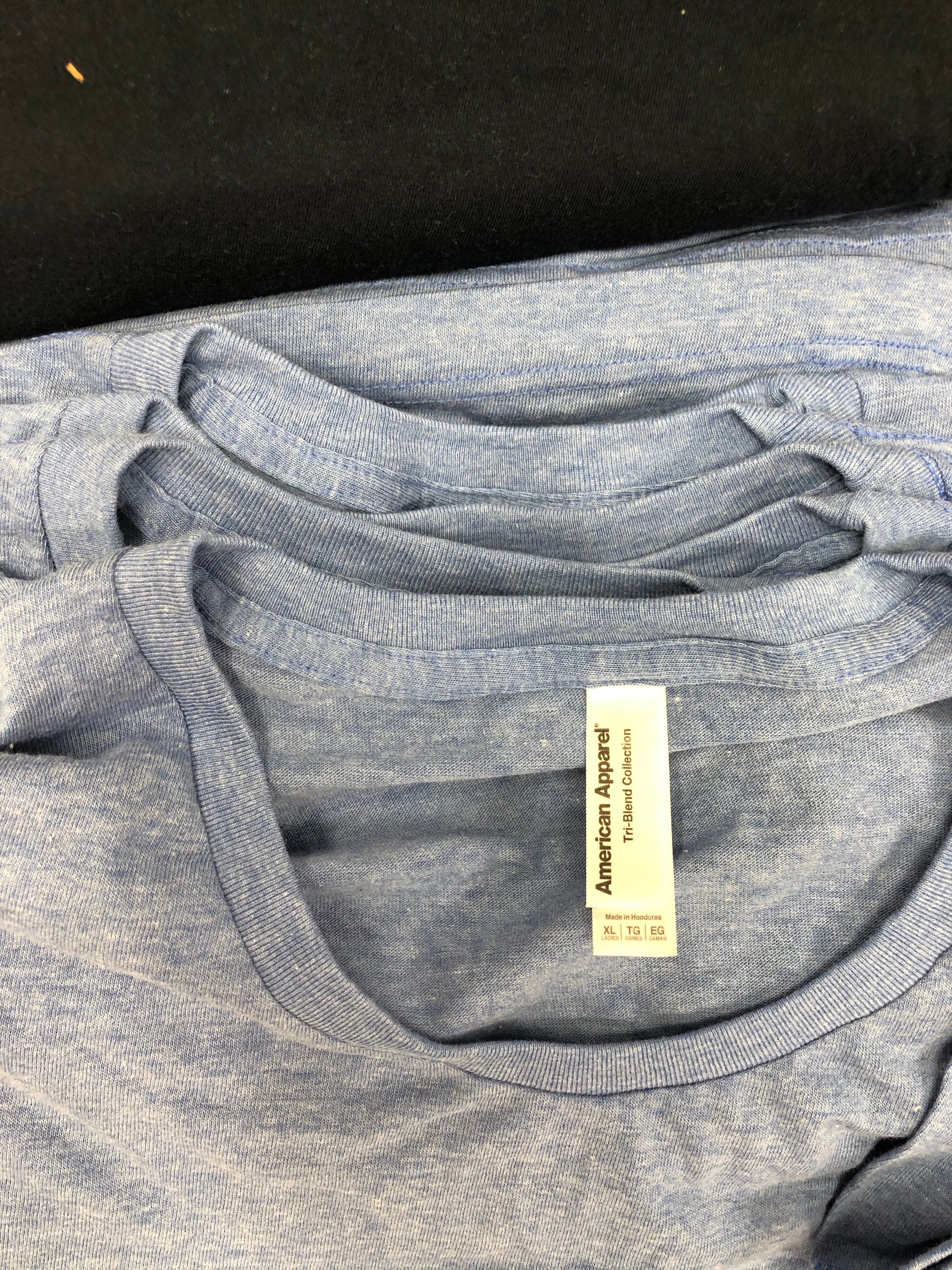 | No | American Apparel | Short Sleeves Tri-Blend Heather Blue | $16.00 | XL | 15 | $240.00 | |