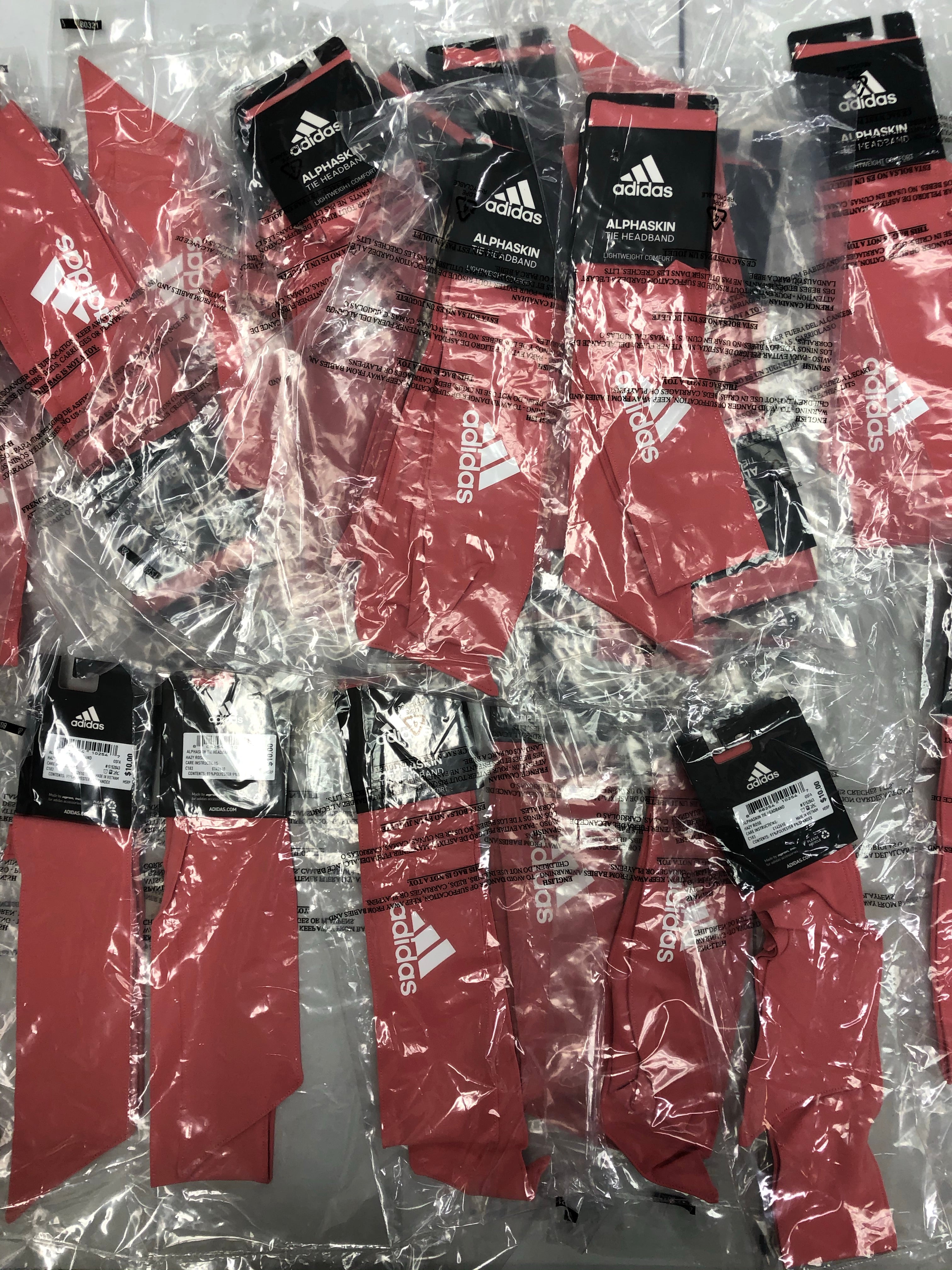 | Yes | 888254102547 | ADIDAS | adidas Alphaskin Tie Headband, Hazy Rose/White, One Size | 10 | O/S | 30 | $300.00 |