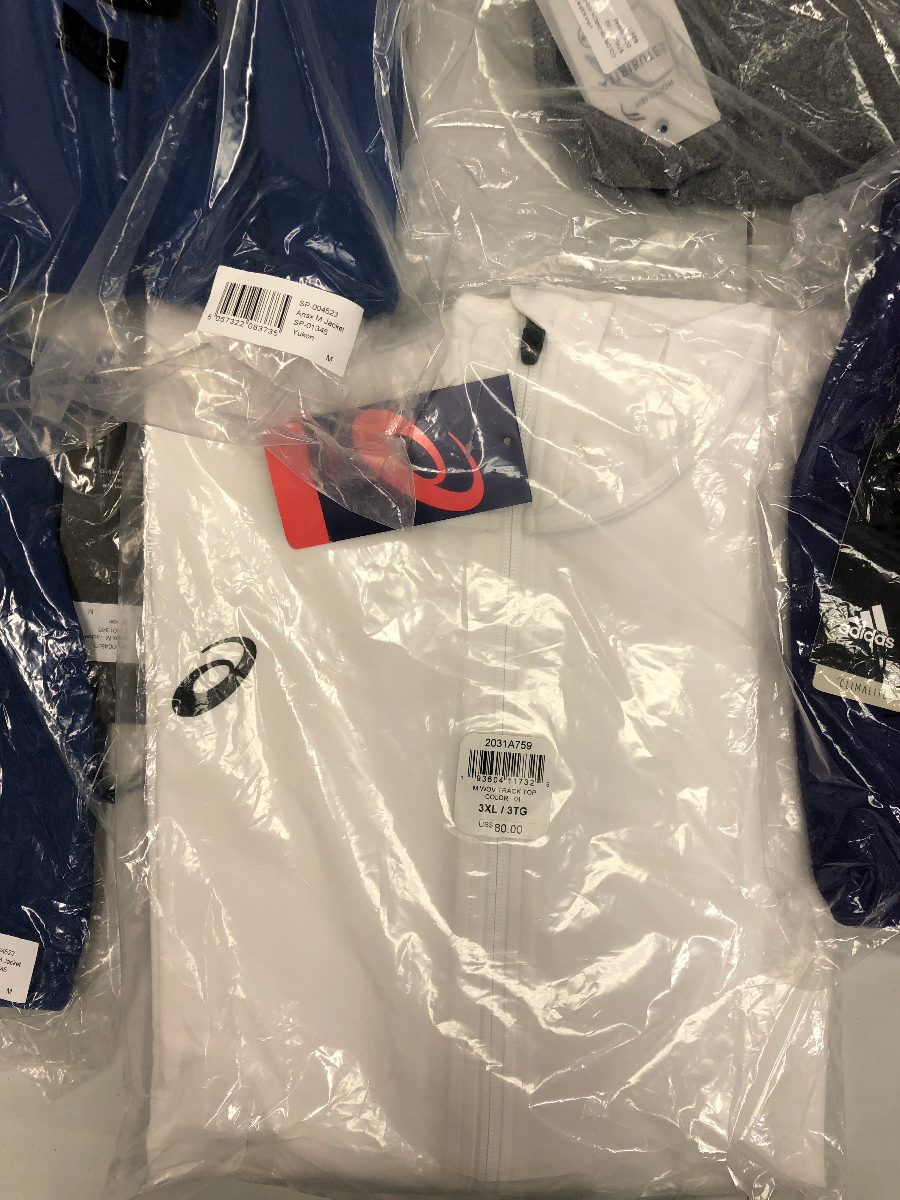 | Yes | 193604117325 | ASICS | ASICS Team Woven Track Top, Team White, x x x Large | 80 | 3XL | 2 | $160.00 | |