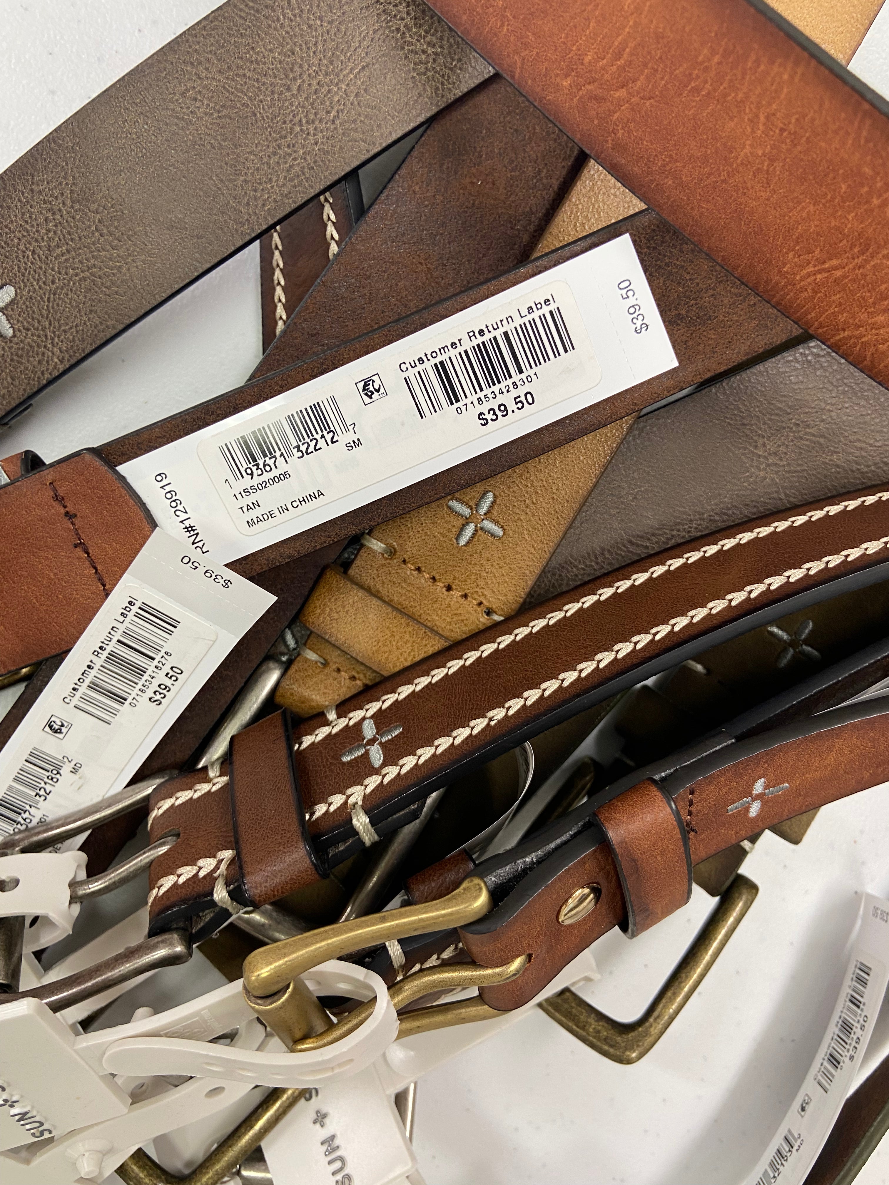 | Yes | 193671322097 | SUN + STONE/RANDA ACCESS LEATHER | Sun Stone Mens Heavy-Stitch Casual Belt Brown M 34-36 | 1 | $39.50 | MEDIUM S/S | $39.50 | F | 3 |